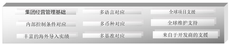 在世界各地的利用实现了多语言,多币种,多基准管理,从一般会计到销售、采购、库存管理,